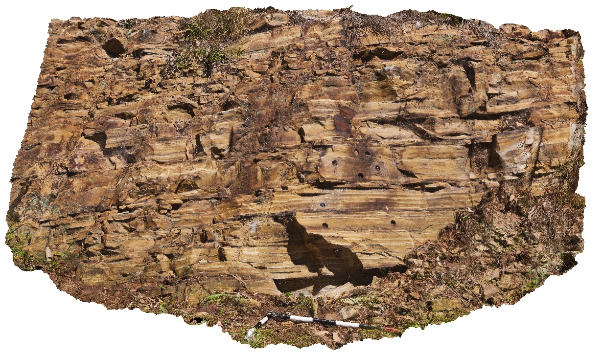 | Description: | Tillite, varved siltstones, tuff, red and green zeolitic mudstone with dropstones interbedded within thick bedded lithic sandstone and conglomerate. |