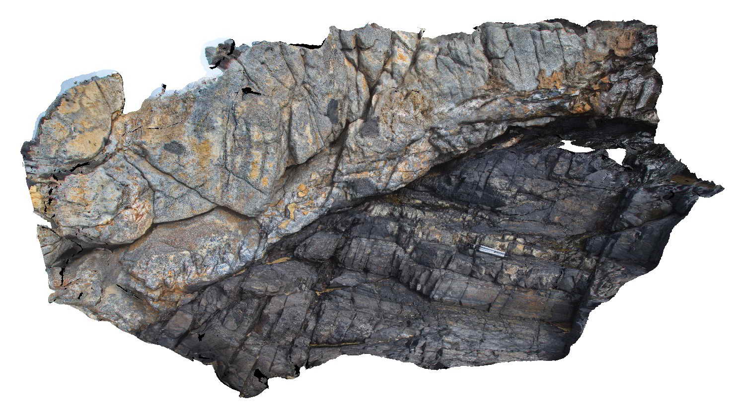 | Description: | contact metamorphosed fine to medium sandstone with thin silty interbeds |