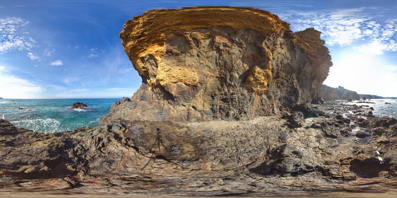 | Description: | dark grey basalt displaying spheroidal weathering and an irregular surface. |