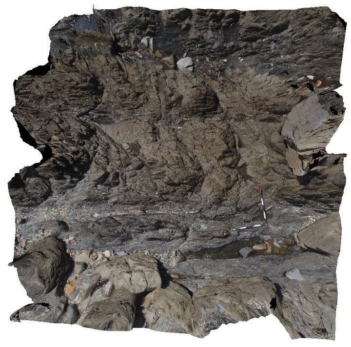 | Description: | Undifferentiated mylonitised Kanmantoo Group metasediment: Strongly foliated, recrystallised, fine to medium-grained, grey quartz mylonite and phyllite. Abundant deformation features include anastomosing mylonitic foliation, boudinaged layering. |