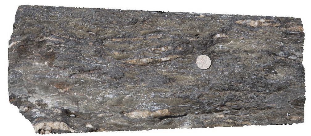 | Description: | Undifferentiated mylonitised Kanmantoo Group metasediment: Strongly foliated, recrystallised, fine to medium-grained, grey quartz mylonite and phyllite. Abundant deformation features include anastomosing mylonitic foliation, boudinaged layering. |