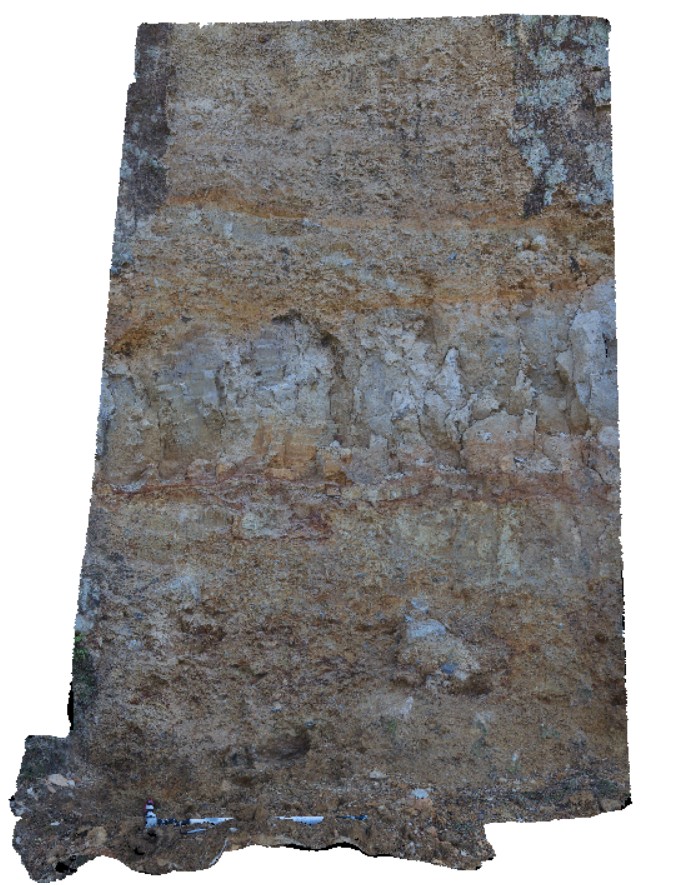 detail of location StyxRd1, showing regolith profile; fine colluvial scree overlying silty-clay (aeolian), overlying coarser colluvial sediments. Styx road, Tasmania.